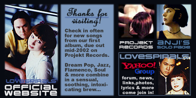 We are currently in the process of changing our name to our long-time moniker, Lovespirals. Anji and I will be redesigning the site to reflect the new band name sometime in the future, but perhaps not until we’re closer to releasing a new album. (The last two site redesigns coincided with the release of Temporal and Flux, based on the cover art and color scheme, which seems like a good tradition) There may not be many site updates for awhile, but be sure to check our mp3.com page occasionally to find out the latest news and to get a sneak preview of the upcoming album’s material!